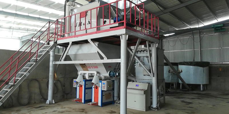 该生产线针对石膏砂浆粉体比重较大、具有一定粘结性等特点,在传统干粉混合生产线基础上进行改良创新。在保证设备稳定性、称重精度、日产量基础上,对设备进行优化,使其更符合石膏基产品的生产。